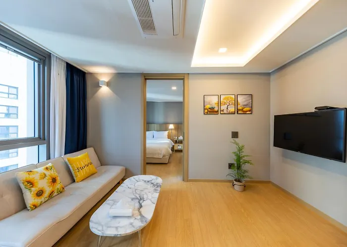Om van uw vakantie in Busan te genieten, verblijf in Hera Haeundae Family Residence Busan van 62 m², gelegen op 3 km van het Cheongsapo Daritdol Observatorium en binnen 5 minuten te voet van OPS Haeundae. Bij het appartement is Wi-Fi en een privéparkeerplaats beschikbaar.